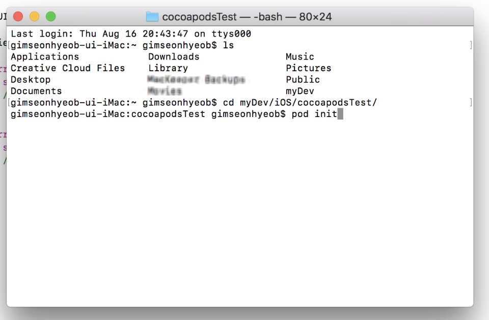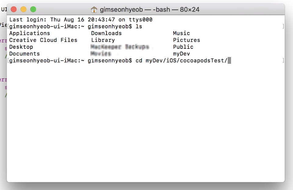 그 프로젝트로 이동하여 cocoapods를 설치하기 위해
