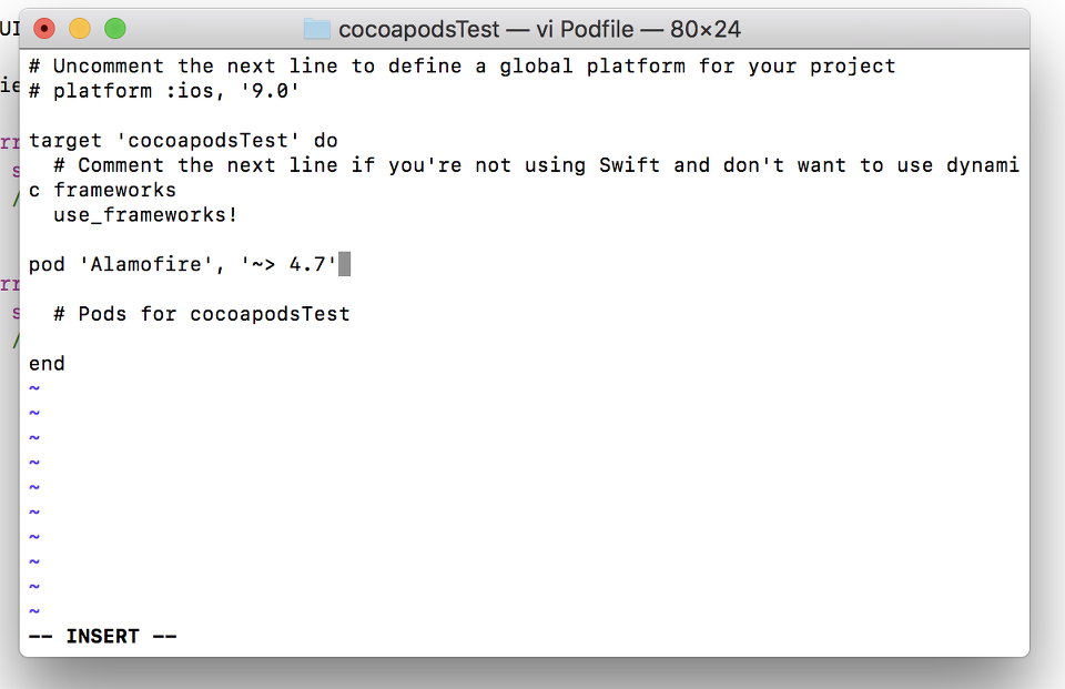 Podfile 을 수정하기 위해서 vi 또는 vim 을 켭니다.
