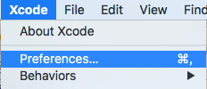 Xcode -> Preference... 실행