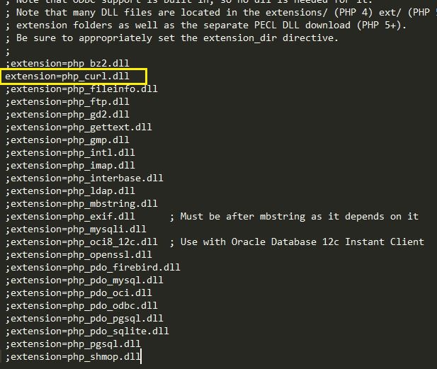 이게 처음에 ;extension=php_curl.dll 이렇게 주석 처리가 되어이을텐데 주석을 풀어줍니다. ( ; 만 지워주면 됩니다.)