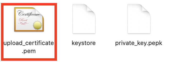 // 맥(macOS) keytool -export -rfc -alias 키이름 -file upload_certificate.pem -keystore 키스토어이름// 윈도우 keytool -export -rfc -keystore 키스토어이름.jks -alias 키이름 -file upload_certificate.pemupload_certificate.pem 파일이 생성됩니다.