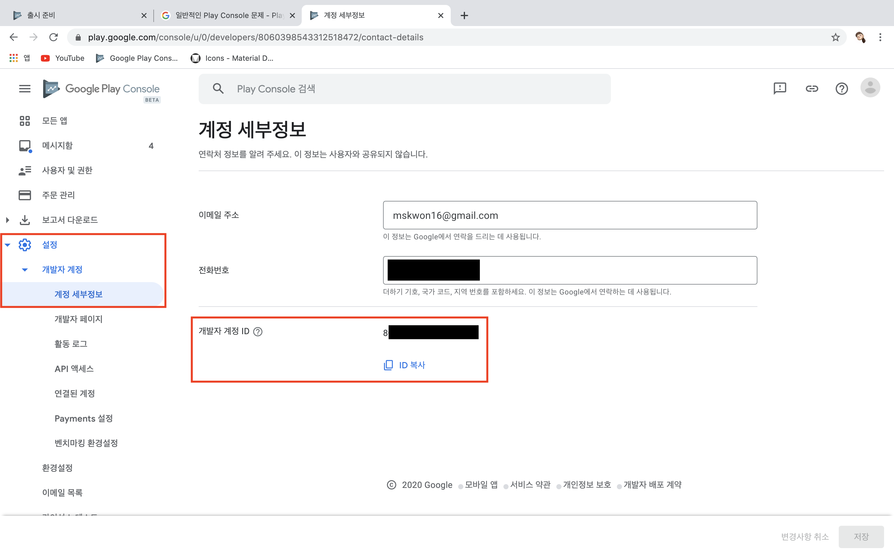 개발자 계정 ID는 긴 숫자로 되어있습니다.