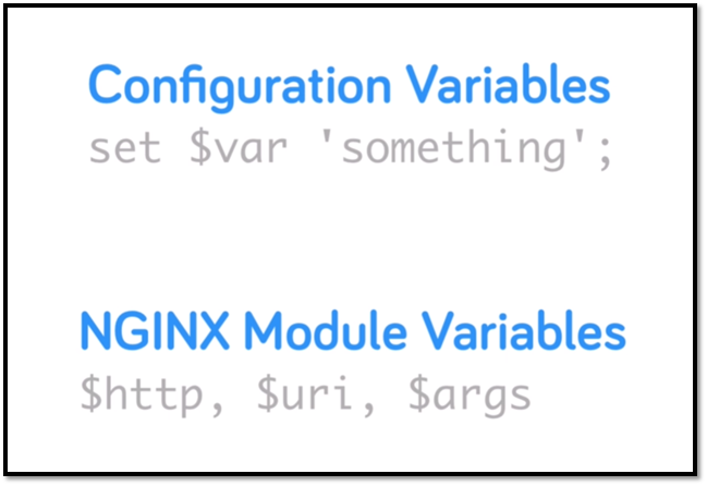 이러한 변수에는 사용자가 직접 정의해서 사용하는 configuration variable와 nginx에 내장되어 있는 NGINX module variable이 있습니다.