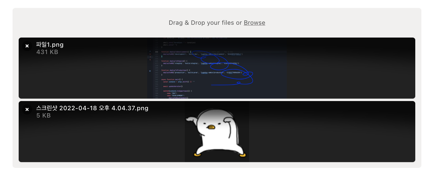 파일 업로드랑, 업로드 이후 파일 순서 변경할때 감지하는 명령어를 기록하기 위해서 작성.
